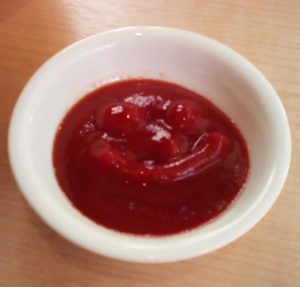 Instead of putting the ketchup bottle (pot of jam, dish of grated cheese, plate of garlic bread…) in the middle of the table for them to hanker after, give them a small amount of ketchup in a dipping sauce dish (handful of grated cheese in a ramekin, piece or two of garlic bread on a side plate…). It may sound like a faff, but it’s totally worth it because:
